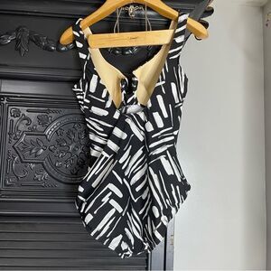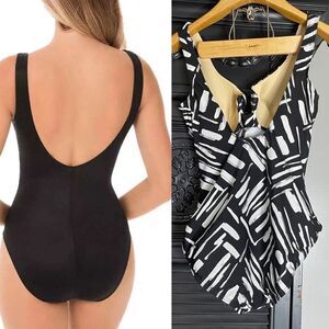 Miraclesuit Must Haves Escape One Piece Swimsuit Black White Underwire Womens 14
