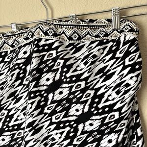 Delightfully drenched in a boho ikat black and white print with gold flecks up top to accentuate the bust, slim the hips and everything in between.