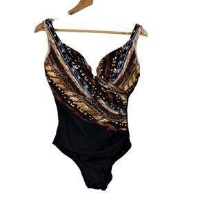 Miraclesuit NWT Escape One Piece Swimsuit Safari Feathers Size 14 Bra Top