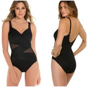 Miraclesuit NWT Solid Black Net Work Madero Underwire One Piece Swimsuit