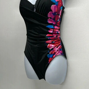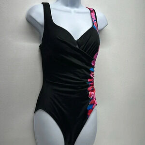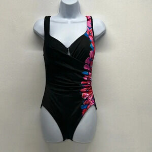 Miraclesuit One Piece Swim Bathing Suit Floral Print Blue Pink Black Size Small