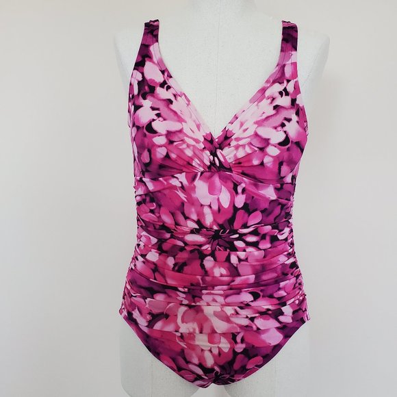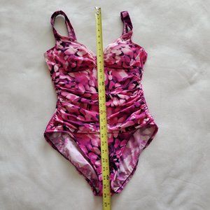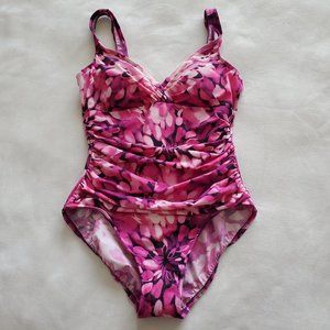 Miraclesuit One Piece Swimsuit Pink Floral Size 10 perfect condition Slimming