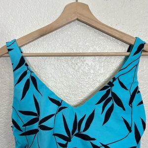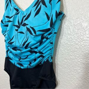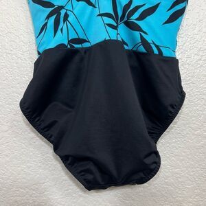 Miraclesuit One Piece Swimsuit Tropical Leaf Print Aqua Blue and Black Size 12