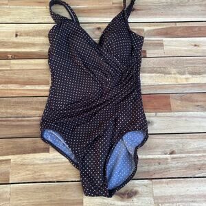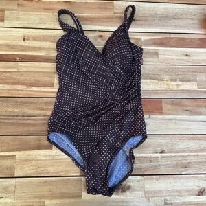 Miraclesuit One-Piece Swimsuit – Brown Polka Dot – Size 10 – Tummy Control Vintage Retro Swim