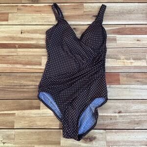Miraclesuit One-Piece Swimsuit Brown Polka Dot Size 10 Tummy Control Retro