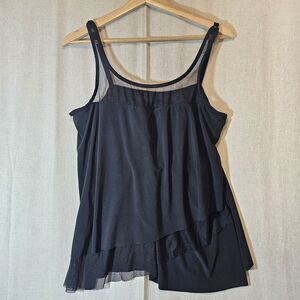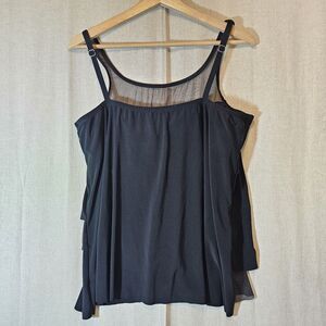 Miraclesuit Plus Mirage Black Tankini Layered Swimsuit Top Womens Size 14