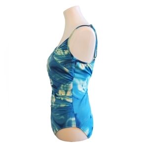Miraclesuit Plus Size One Piece Bathing Suit Ruched Blue Tie Dye Swimsuit Sz 16