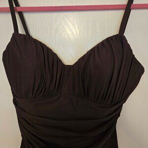 Excellent condition, worn only once or twice - chocolate brown Miraclesuit Rialto minimizing one-piece swimwear with ruched bodice and flattering draped feature in front. Adjustable straps.