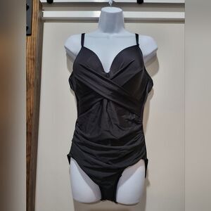 Miraclesuit Rock Solid Captivate One Piece Swimsuit NWOT size 14 Black