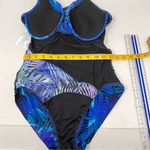 Miraclesuit Royal Palms One Piece Swimsuit Size 10 Blue Tropical Print Underwire