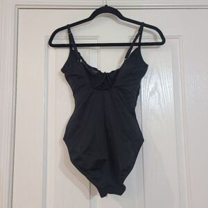 Miraclesuit Shirred Black Wired Built in Bar One Piece Swimsuit Size 12