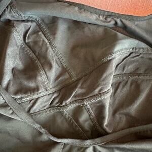 -Description: Size 16 One Piece Swimsuit Black Mesh Made in USA, this has a mesh see through area in the top that makes a V and a small area on the side, beautiful quality made swimsuit!