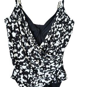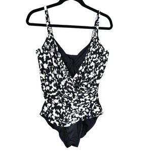 Miraclesuit Swimsuit One Piece 14 Underwire Louise Wrap Rouching Black