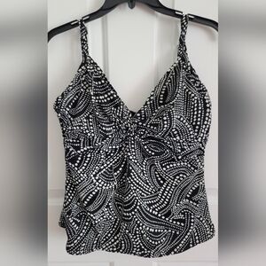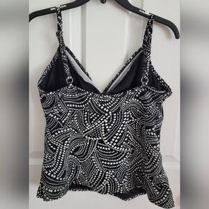 Miraclesuit Tankini Swim Top Black White Swirl Dot Underwire Size 10