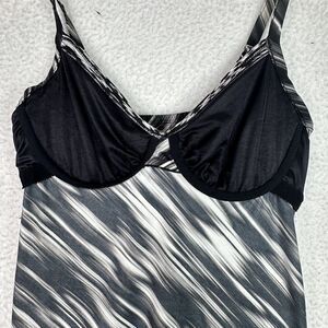* Miraclesuit Tankini Swimsuit Top Womens 10 Black White Love Knot Adjustable Straps