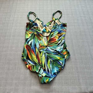 Miraclesuit Tropical Ruched Medium One Piece Swimsuit Multicolor Tummy Control *