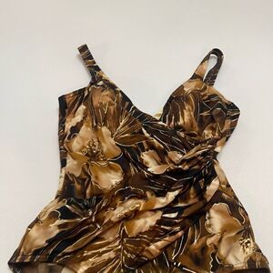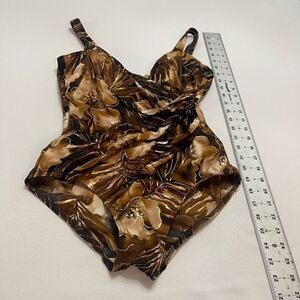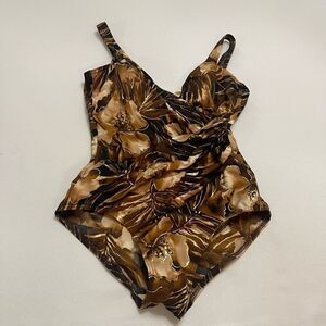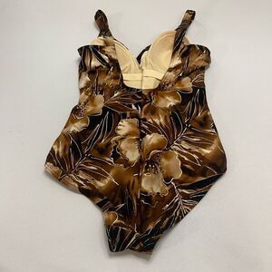 Miraclesuit VTG Pandora Brown Floral One Piece Bathing Suit Swimsuit Size 12