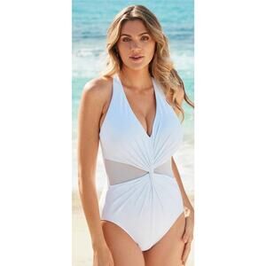 Miraclesuit White Illusionist Wrapture One Piece Swimsuit 16 NWT