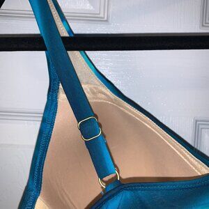 There's a built-in bra, with underwire and adjustable hook and clasp closure in the back.