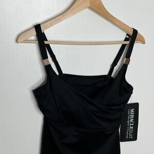 Miraclesuit Womens Swimwear Surplice Underwire Tank Top 34D Black Slimming
