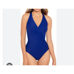 Miraclesuit Wrapsody Baiting Suit One Piece Size 14 Blue Slimming