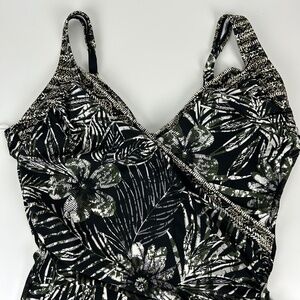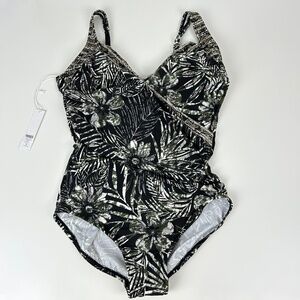 Miraclesuit size 16 Zahara Sanibel one piece swimsuit black green floral new with tags.