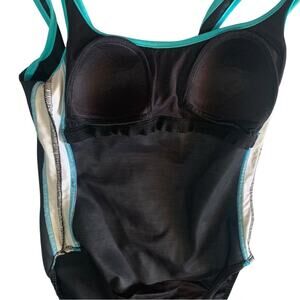 Miraclesuit size 8 medium Black white stripe One Piece Swimsuit bathing beach sl