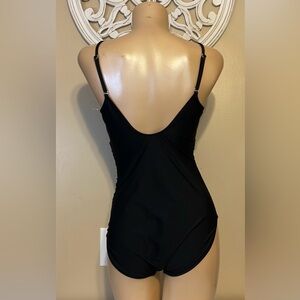 Miraclesuit womens 12 bathing suit swim Black One Piece Plunging V-Neckline nwot