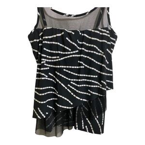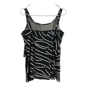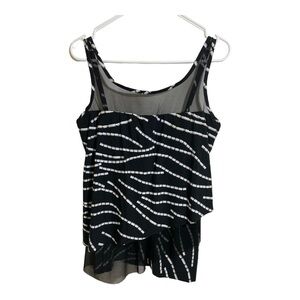 Miraclesuit womens tankini top black sheer striped underwire. Size 14 adjustable straps . Plus size.