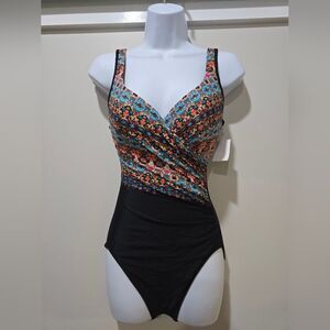 Miraclesuit Nefertiti Its A Wrap One-Piece Swimsuit NWOT Size 8 Multi-Color