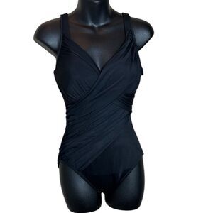Miraclesuit women’s 8 revele one piece swimsuit black draped slimming flattering