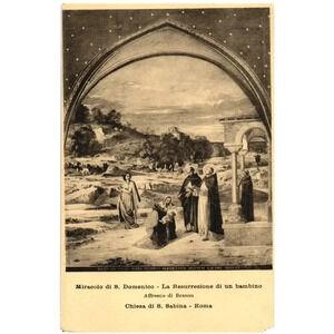 Miracle of S. Domenico The Resurrection of a Child Fresco by Besson Church of S. Sabina Rome. This postcard features the fresco "The Resurrection of a Child" by Besson, located in the Church of Santa Sabina in Rome.