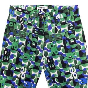 Mirae Paris Women’s ae Pattern Green Multicolor Stretch Flare Pants Size 34 US 2