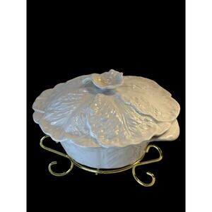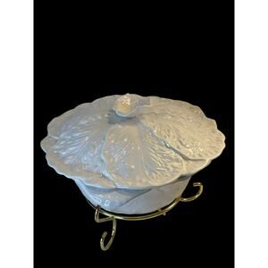 Miramar of California Vintage Cabbage Leaf Oven Proof Baking Chafing Dish with Lid and Stand