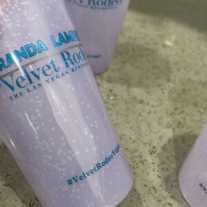 Only used for our drink at the concert, washed and stayed in cabinet, cups have a shine to them. Letters in blue sparkle