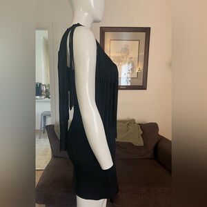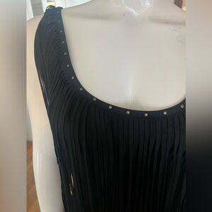 Super cute black fringe dress, bronze rivet detailing around neckline. Brand new with tags size small
