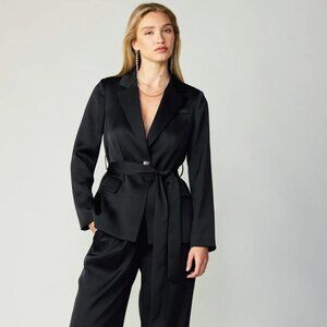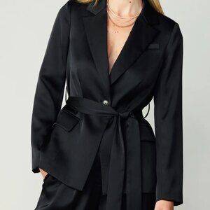 A tie belt cinches the waist of this sleek tailored blazer, creating a defined and flattering silhouette. Fastened by a single button at the front, it's got notched lapels, flap pockets, and a single welt pocket at the chest. Complete with a vent at the back hem.