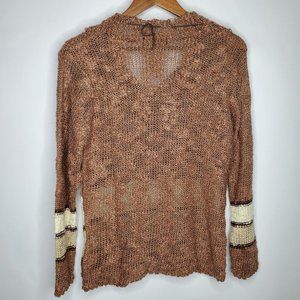 Mirasati Paris Womens Open Knit Sweater Size S Brown Beaded Necklace Boho Tribal