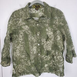 Mirasol Button Down Shirt Nature Sheer Lightweight Goblincore Earthy Womens M