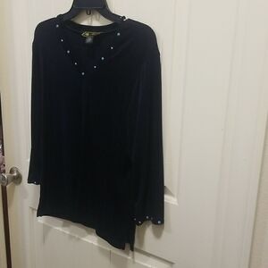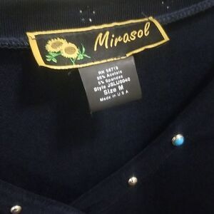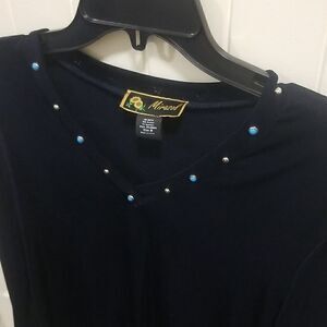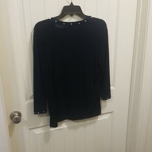 Mirasol Casual Studded Collar/ Studded Sleeve V-Neck Top Wmn's sz Large Navy Blue