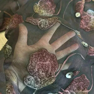 Mirasol Silk Blend Floral Textured Button Down Blouse Shirt Sz L