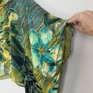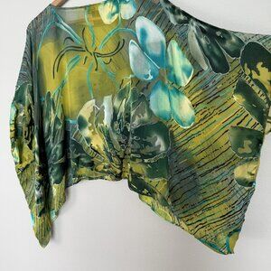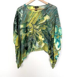 Mirasol Silk Floral Dolman Sleeve Blouse Womens One Size Artsy Bohemian Colorful