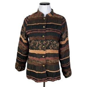 Mirasol Striped Floral Button Down Jacket Women's Medium Brown Black Lined