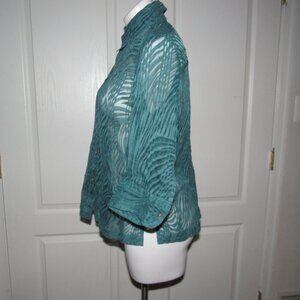 Mirasol Teal Sheer Burnout Textured Button-Up Blouse | Size M | Boho Chic
