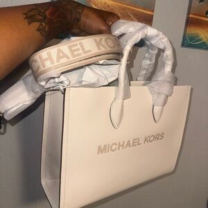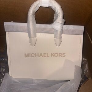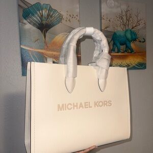Elevate your style with the Michael Kors Cream Tote Bag. Perfect for any occasion, this elegant bag combines functionality with a chic design. Brand New. Still in box.