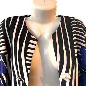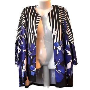 Mirelle Women's Blk/Wht Striped Blue Floral 1-Button Front Cardigan/Jacket SZ XL