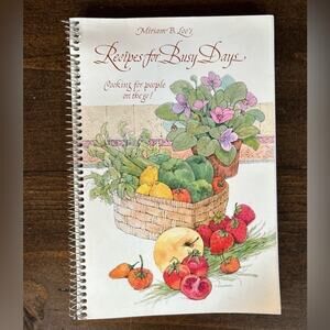 Miriam B. Loo's Recipes For Busy Days Vintage Cookbook Colorful Delicious Food. Vintage cookbook with recipes for lots of different old school meals. In good used condition.