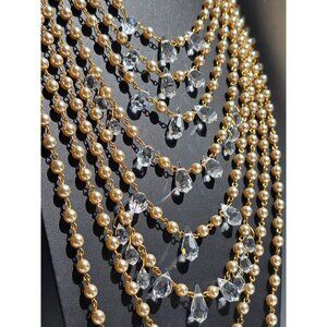 Miriam Haskell 8 Tiered Crystal Gold Pearl Runway Showroom Statement Necklace