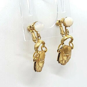 Miriam Haskell Art Glass Bead Egyptian Pharaoh Dangle Screwback Vintage Earrings