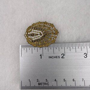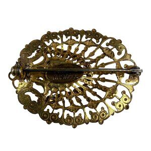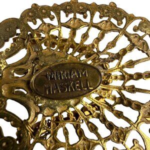 Miriam Haskell Brooch Women Gold Tone Filigree Faux Pearl Rhinestones Oval Desig